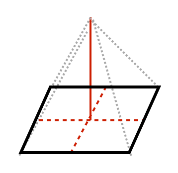 Has two sets of parallel lines, and a third set of lines disappearing into one vanishing point.